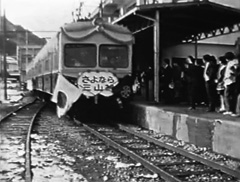 At a ceremony to commemorate the closing of the Sanzan Line, a large crowd, made up of people ranging from children to local government officials and business executives, gathers to give the railway company a sendoff so rousing that it could easily be mistaken for a grand opening ceremony. This footage conveys the importance that the railway held for the people of the community, and we are also treated to images, taken by another cameraman, of a younger Kiyotaki Akira with his 8mm camera.
